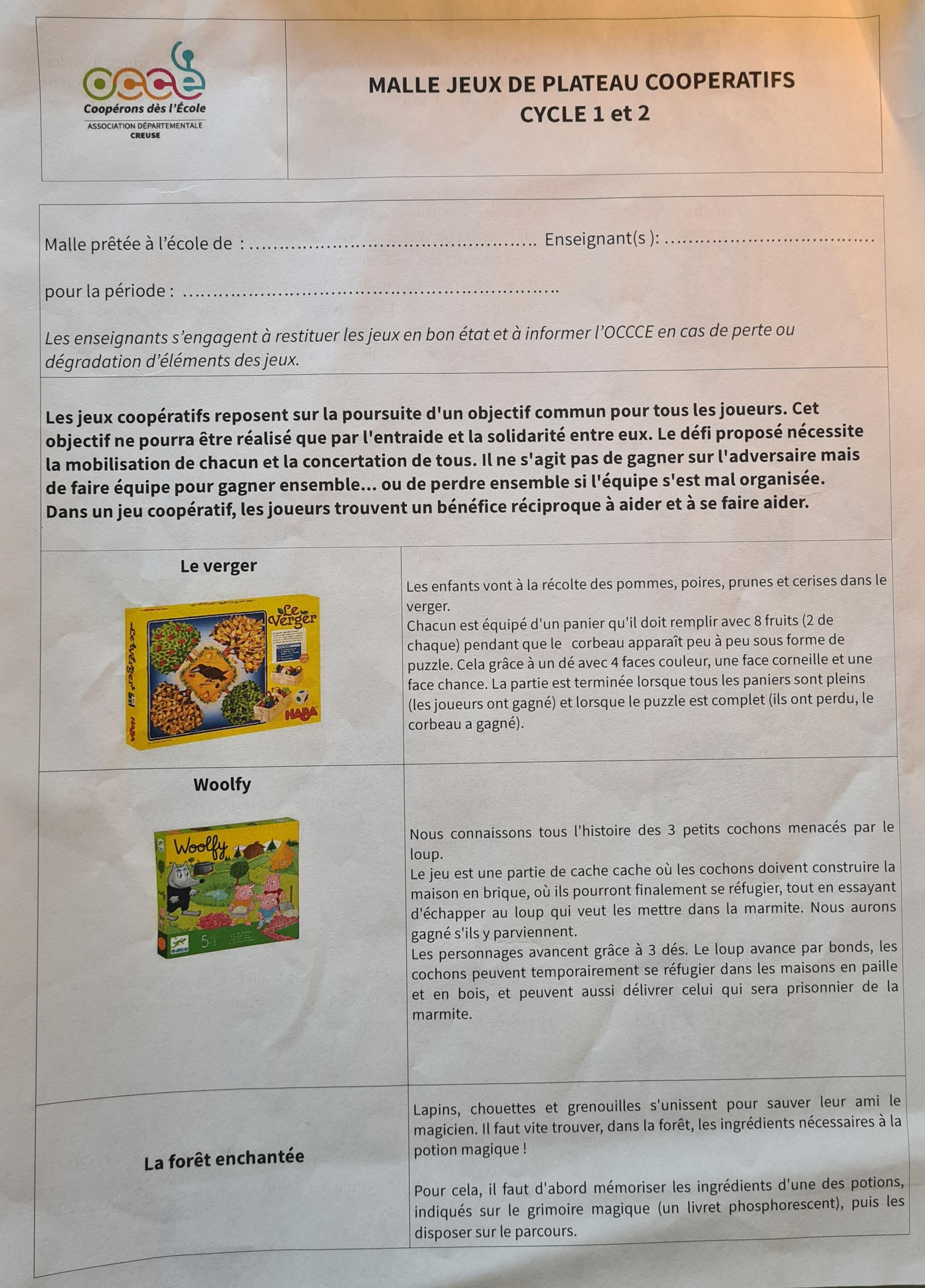 Malle jeux de plateau coopératifs Cycle 1, 2