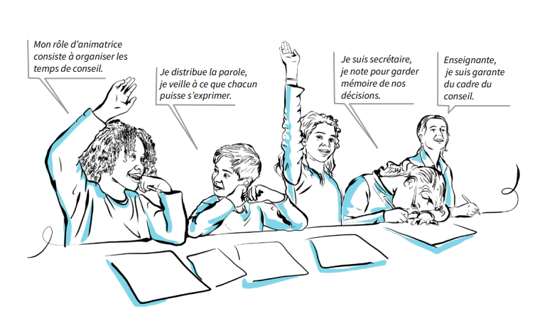 Un cadre sécurisant est posé pour favoriser l’expression de tous : même lieu, même disposition, temps défini, ordre du jour connu, règles de fonctionnement explicites. Les élèves sont formés pour y prendre de plus en plus de responsabilités.